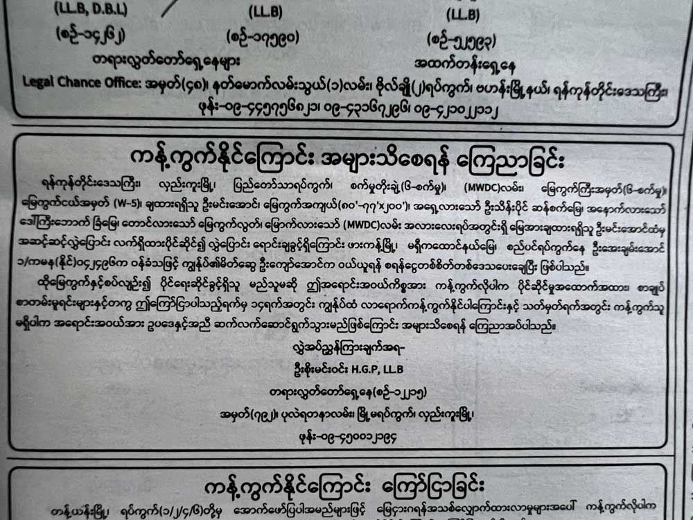 ရန်ကုန်တိုင်းဒေသကြီး၊ လှည်းကူးမြို့၊ ပြည်တော်သာရပ်ကွက်၊ စက်မှုတိုးချဲ့(၆-စက်မှု)၊ (MWDC) လမ်း၊ မြေကွက်ကြီးအမှတ်(၆-စက်မှု)၊ မြေကွက်ငယ်အမှတ်(W-5)၊ မြေကွက်အကျယ်(၈၀'-၇၇'×၂၀၀')