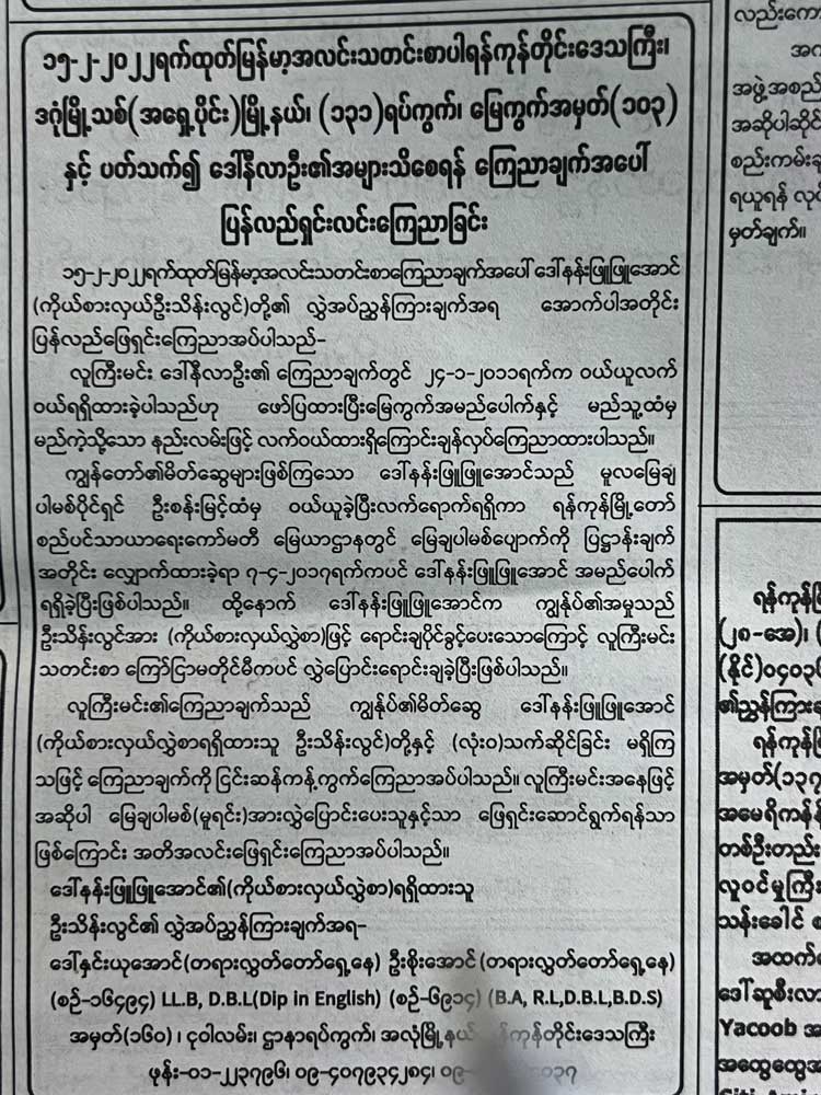 ရန်ကုန်တိုင်းဒေသကြီး၊ ဒဂုံမြို့သစ်(အရှေ့ပိုင်းမြို့နယ်)၊ (၁၃၁)ရပ်ကွက်၊ မြေကွက်အမှတ်(၁၀၃)