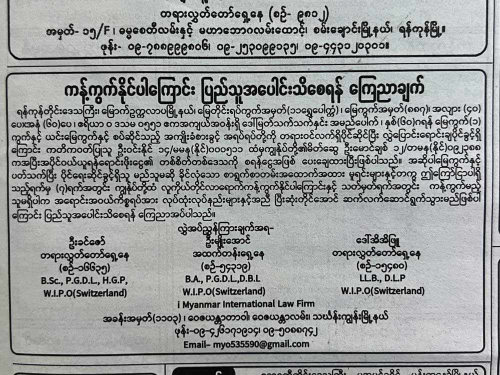 ရန်ကုန်တိုင်းဒေသကြီး၊ မြောက်ဥက္ကလာပမြို့နယ်၊ မြေတိုင်းရပ်ကွက် အမှတ်(၁၁ရွှေပေါက္ကံ)၊ မြေကွက်အမှတ်(၈၈၇)၊
