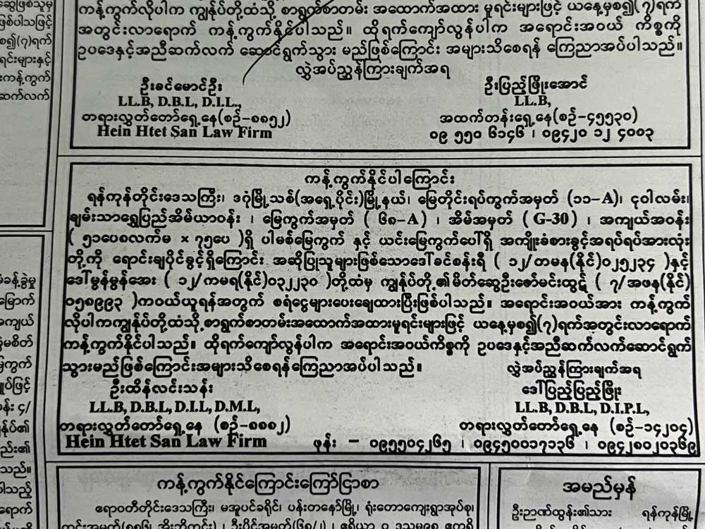 ရန်ကုန်တိုင်းဒေသကြီး၊ ဒဂုံမြို့သစ်(အရှေ့ပိုင်း)မြို့နယ်၊ မြေတိုင်းရပ်ကွက်အမှတ် (၁၁-A)၊ ငုဝါလမ်း၊ ချမ်းသာရွှေပြည်တန်အိမ်ယာဝန်း၊ မြေကွက်အမှတ် (၆၈-A)၊ အိမ်အမှတ် (G-30)၊ မြေအကျယ်အဝန်း (၅၁ပေ ၈လက်မ× ၇၅ပေ)ရှိ ပါမစ်မြေကွက်