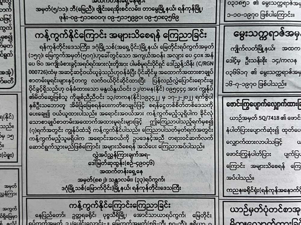 ရန်ကုန်တိုင်းဒေသကြီး၊ ဒဂုံမြို့သစ် အရှေ့ပိုင်း မြို့နယ်၊ မြေတိုင်းရပ်ကွက်အမှတ် 157၊ မြေကွက်အမှတ် 507